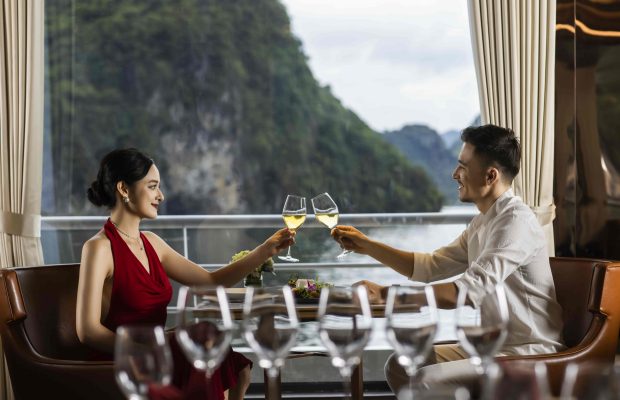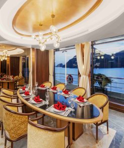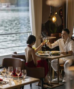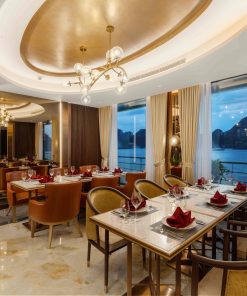 Thưởng thức bữa trưa tự chọn cao cấp tại nhà hàng tầng 2 trong khi tàu di chuyển qua những cảnh quan độc đáo được tạo ra từ hàng nghìn đảo đá vôi như hòn Ấm Tích, hòn Mặt Quỷ…. Quý khách thư thả ngắm nhìn bức tranh phong cảnh kiệt tác xứng danh Di Sản Thiên Nhiên Thế Giới.