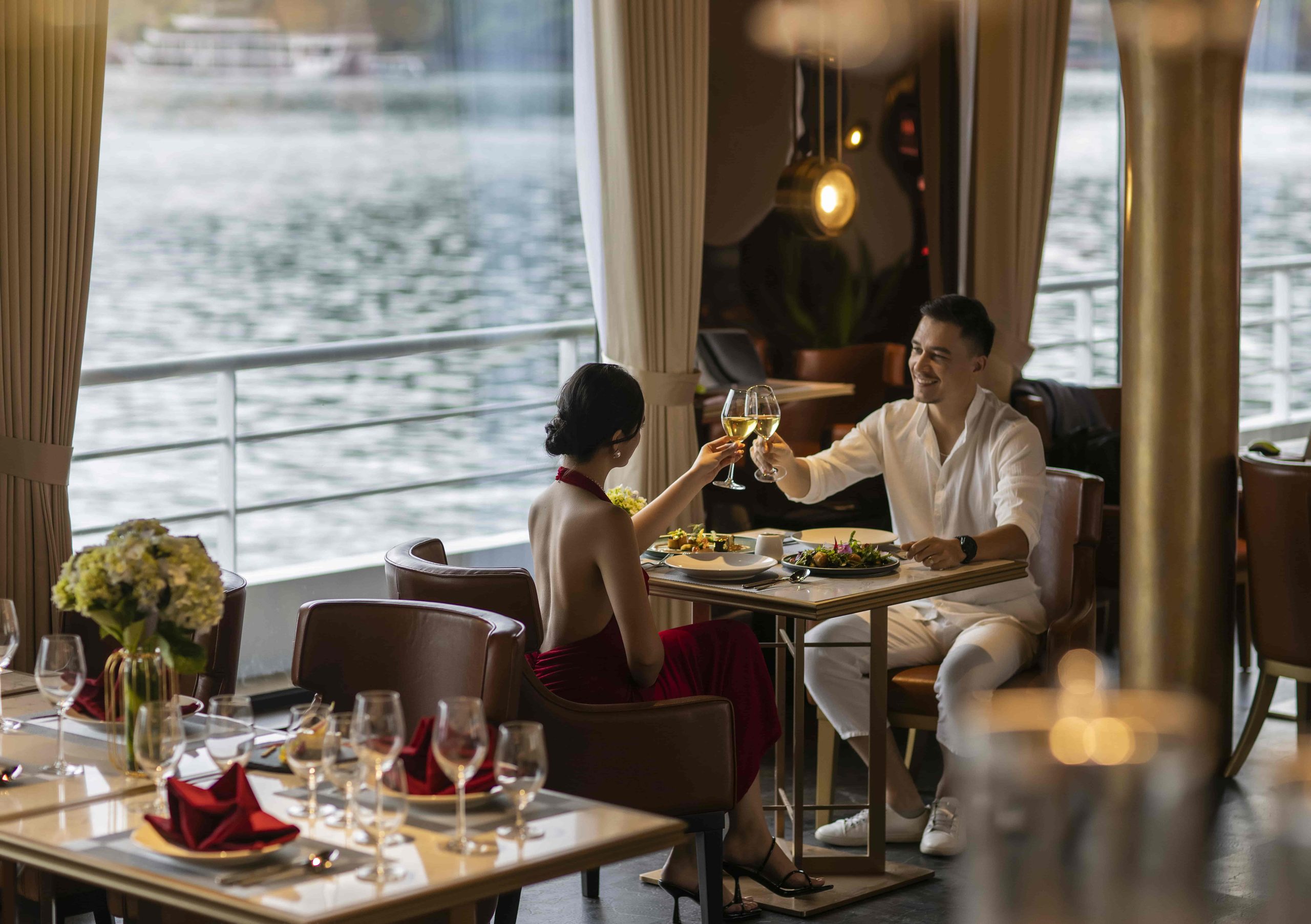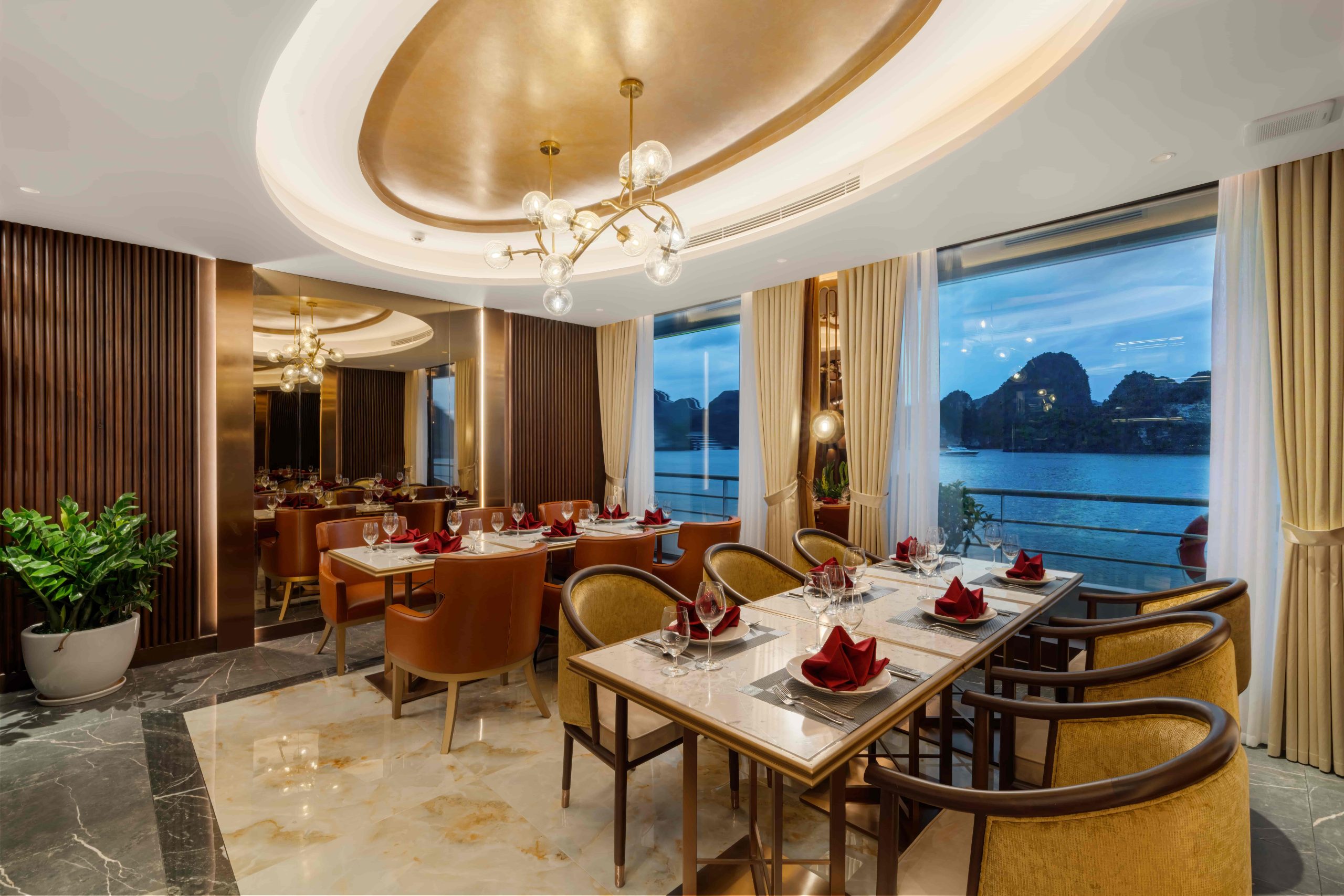Thưởng thức bữa tối thượng hạng tại nhà hàng tầng 2 của Sea Stars Cruise.