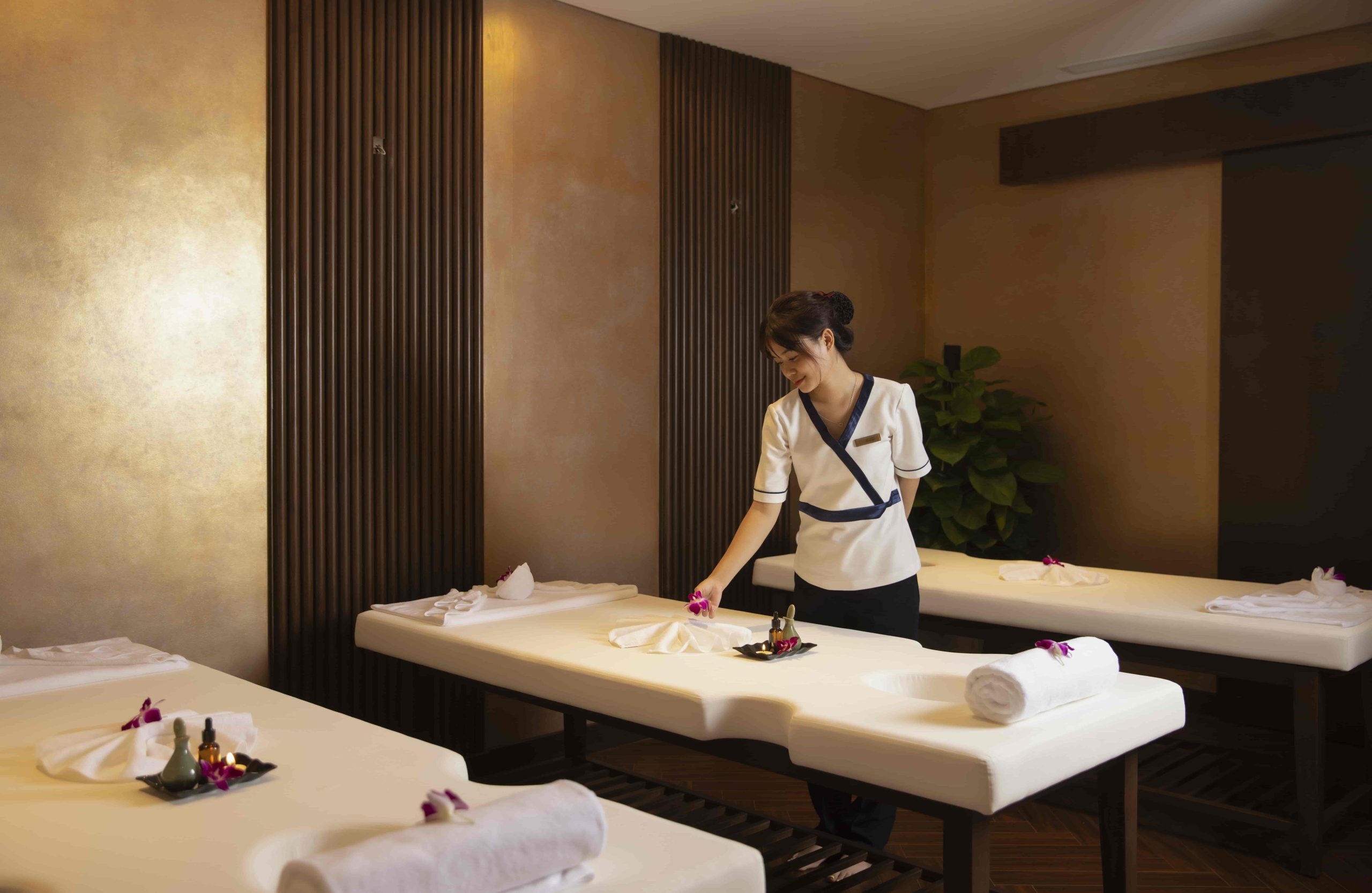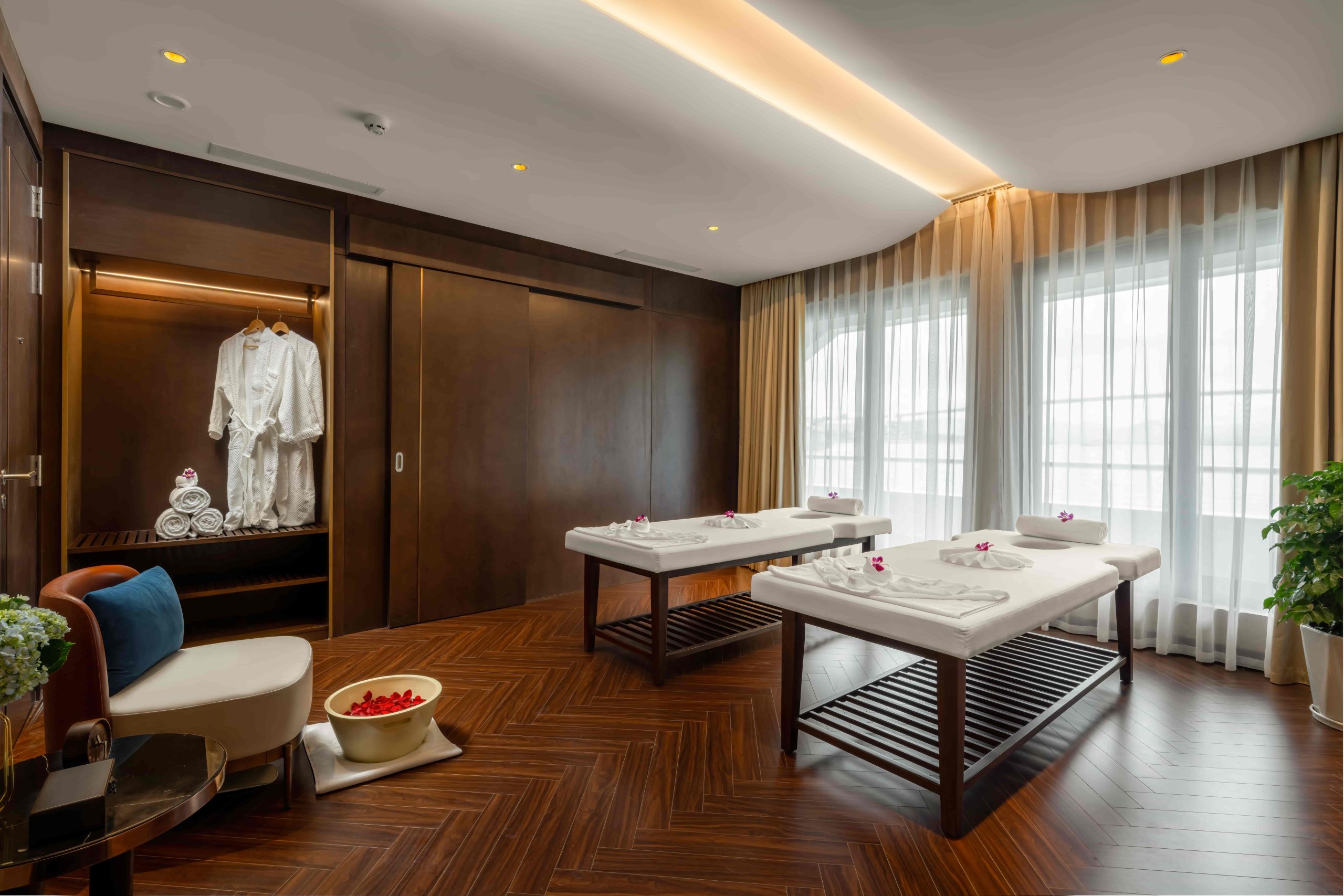 - Đối với hạng phòng President Suite: Tặng thêm 30 phút massage chân & 01 chai rượu vang.
