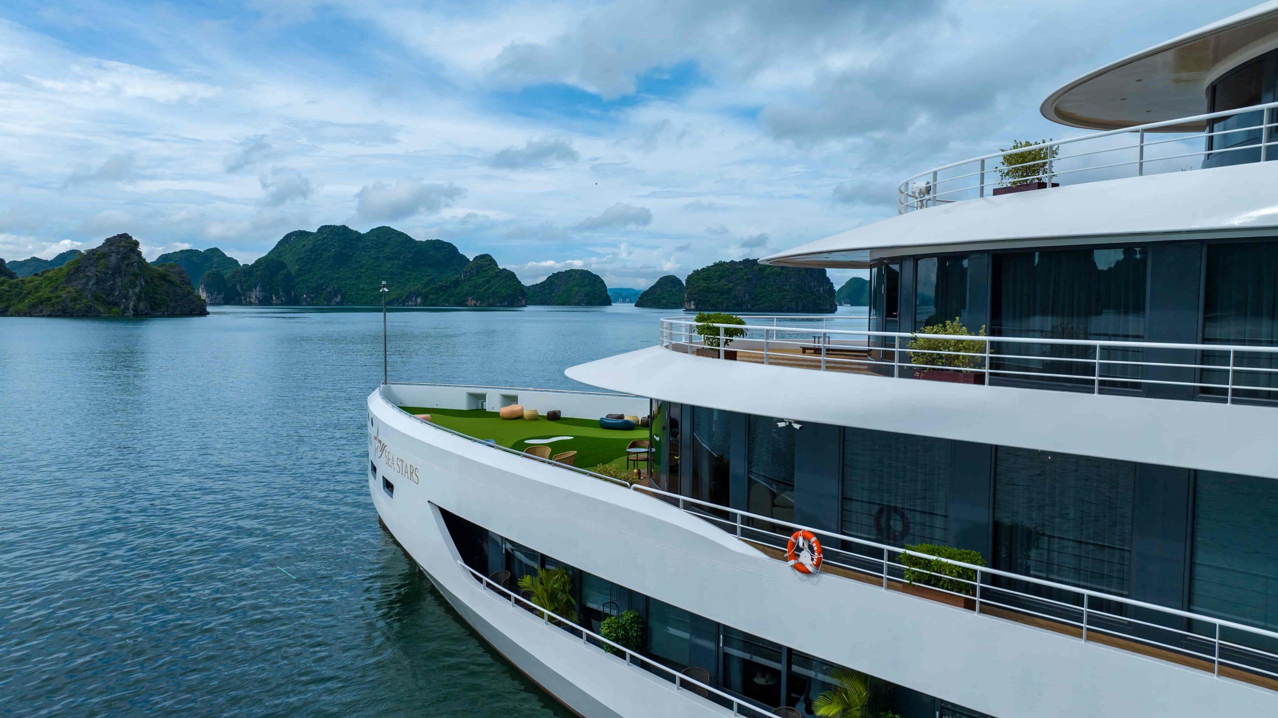 Kết hợp hoàn hảo giữa vẻ đẹp sang trọng với sự hùng vĩ của vịnh kỳ quan, siêu Du thuyền Sea Stars được ví như kiệt tác hoàn mỹ giữa lòng đại dương. Cùng bước vào một thế giới của sự tinh tế và đẳng cấp với những trải nghiệm thượng lưu đích thực.