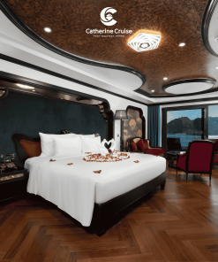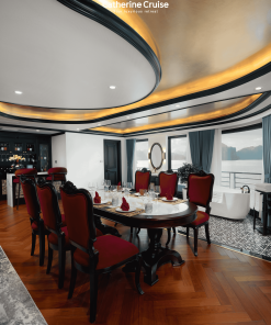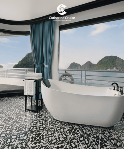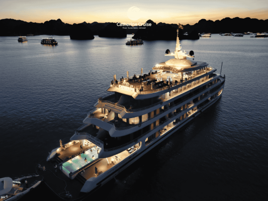 Du thuyền mới hạ thuỷ vào tháng 10/2023, Catherine là một trong những du thuyền đẳng cấp 5 sao mới nhất trên vịnh Hạ Long. Nổi bật với thiết kế Đông Dương kết hợp phương Tây hiện đại, du thuyền Catherine gây ấn tượng với màu trắng thanh lịch cùng hàng loạt nội thất sang trọng.