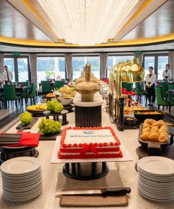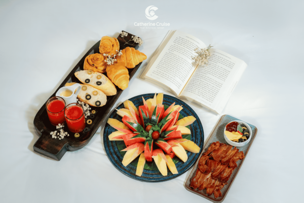 Quý khách dùng bữa sáng nhẹ tại nhà hàng trên du thuyền.