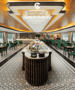 Đắm chìm trong không gian sang trọng của khách sạn nổi Catherine với 2 nhà hàng Harmonia và Ambrosia nơi du khách có thể thưởng thức hương vị của địa phương cùng những tinh hoa ẩm thực quốc tế, quầy bar đầy ắp các loại rượu cao cấp và đồ uống đặc sắc, bể bơi 4 mùa với view toàn cảnh vịnh, sân golf mini, phòng vui chơi cho trẻ em, và nhiều hơn nữa.