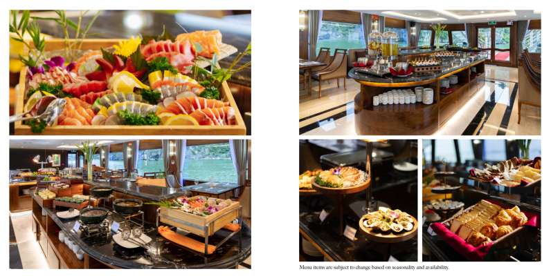 CHÚ Ý: Căn cứ vào điều kiện thời tiết mà lịch trình có thể thay đổi mà không được báo trước. Wifi có trên nhà hàng, khu vực quầy bar tuy nhiên sóng có thể yếu/ không có do điều kiện về địa lý của vịnh rất mong quý khách thông cảm.