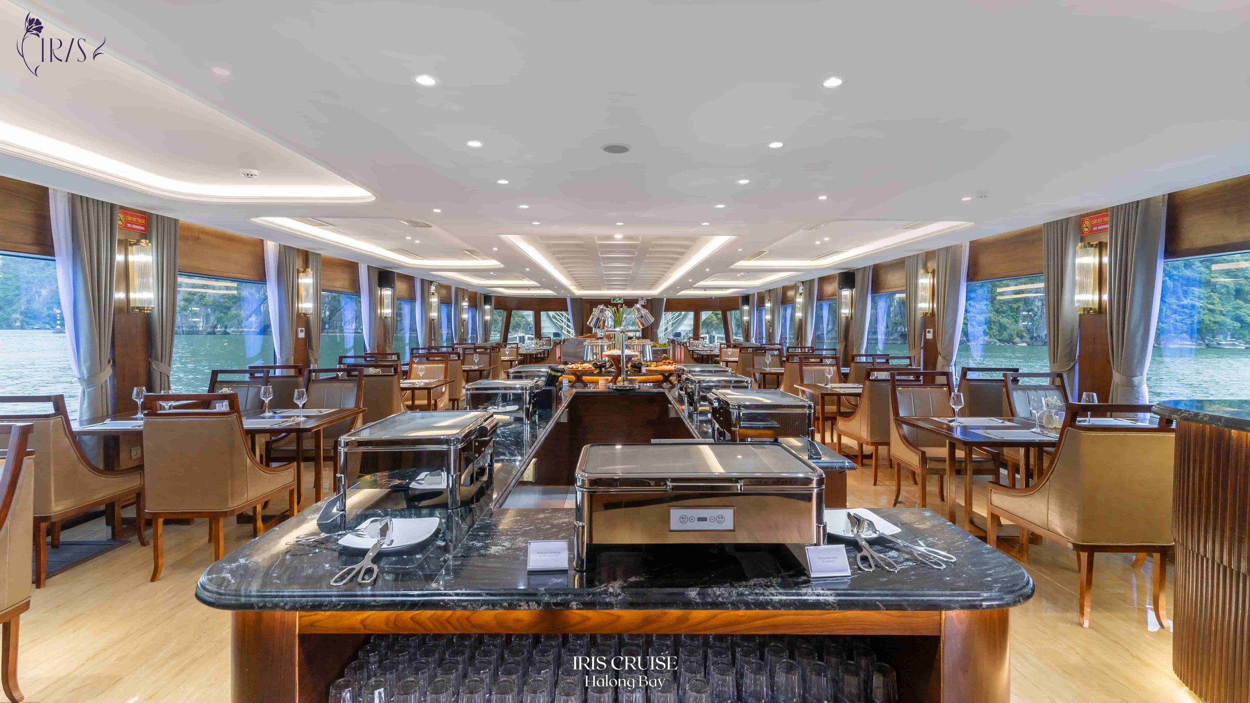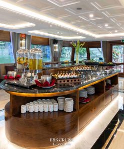 Đặc biệt, khu vực nhà hàng được trang bị đầy đủ sân khấu và hệ thống âm thanh ánh sáng phù hợp với những bữa tiệc tùng trên biển. Đây chính là lý do giúp du thuyền Iris Cruise là lựa chọn hàng đầu cho các đoàn MICE và tổ chức các sự kiện.