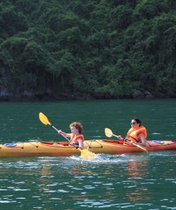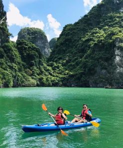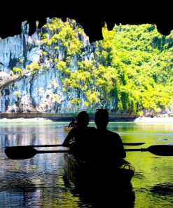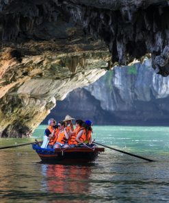 Du thuyền đến Hang Luồn, một trong những hang động độc đáo nhất ở Vịnh Hạ Long với hồ nước khép kín bên trong một ngọn núi khép kín, là nơi đẹp nhất để chèo thuyền kayak hoặc thuyền chèo tay (*phụ phí: 100.000 VNĐ/người).