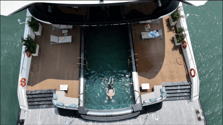 - Quyền sử dụng bể bơi bốn mùa, bể sục jacuzzi phía mũi du thuyền