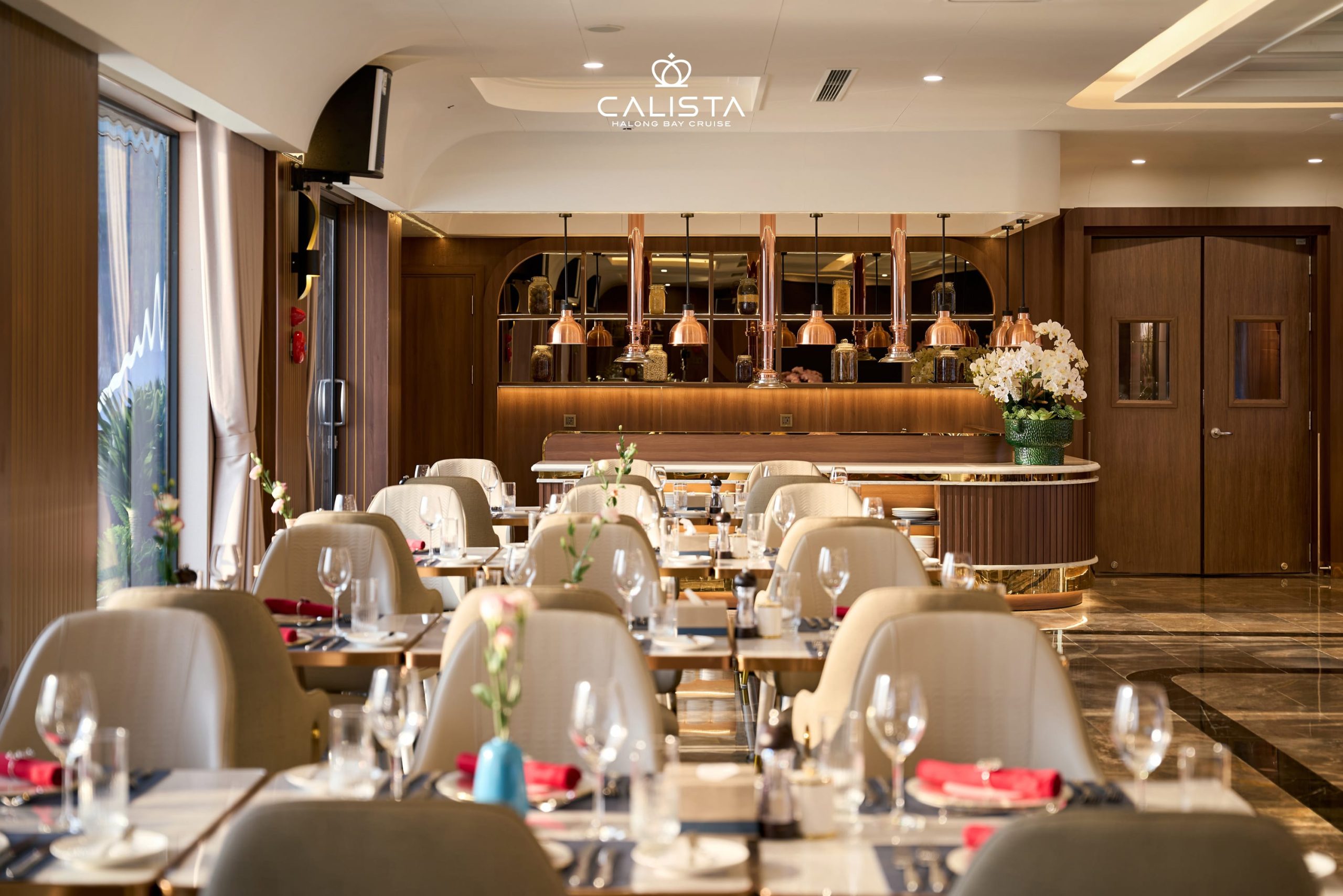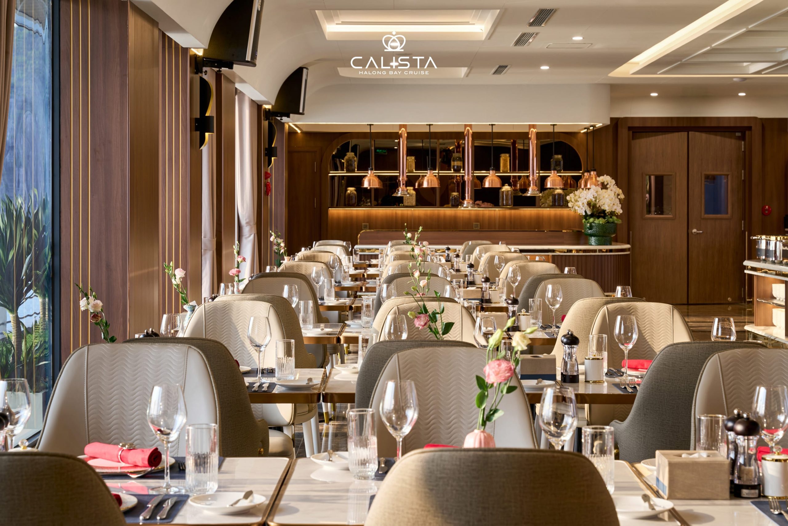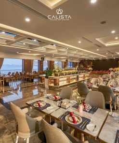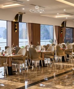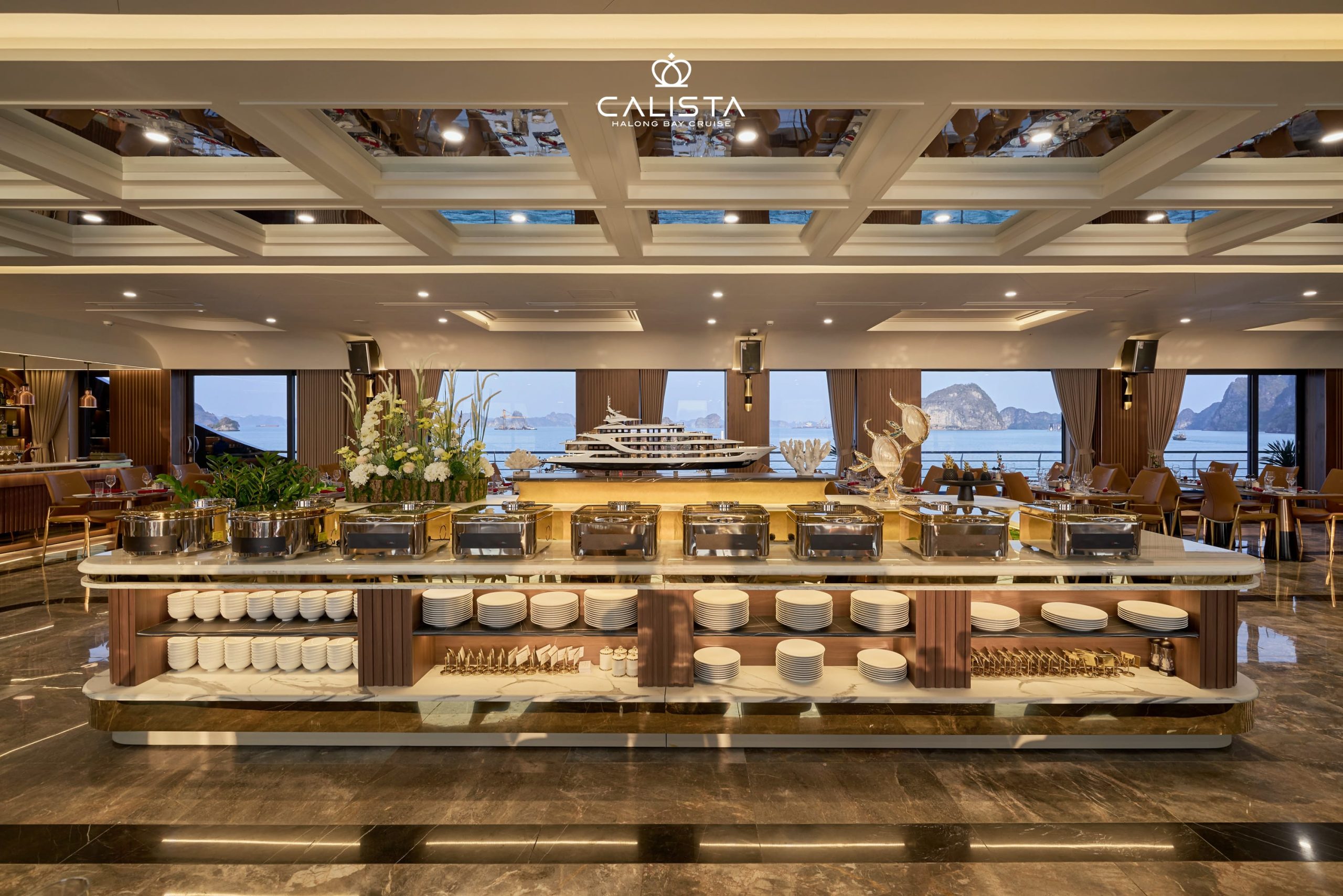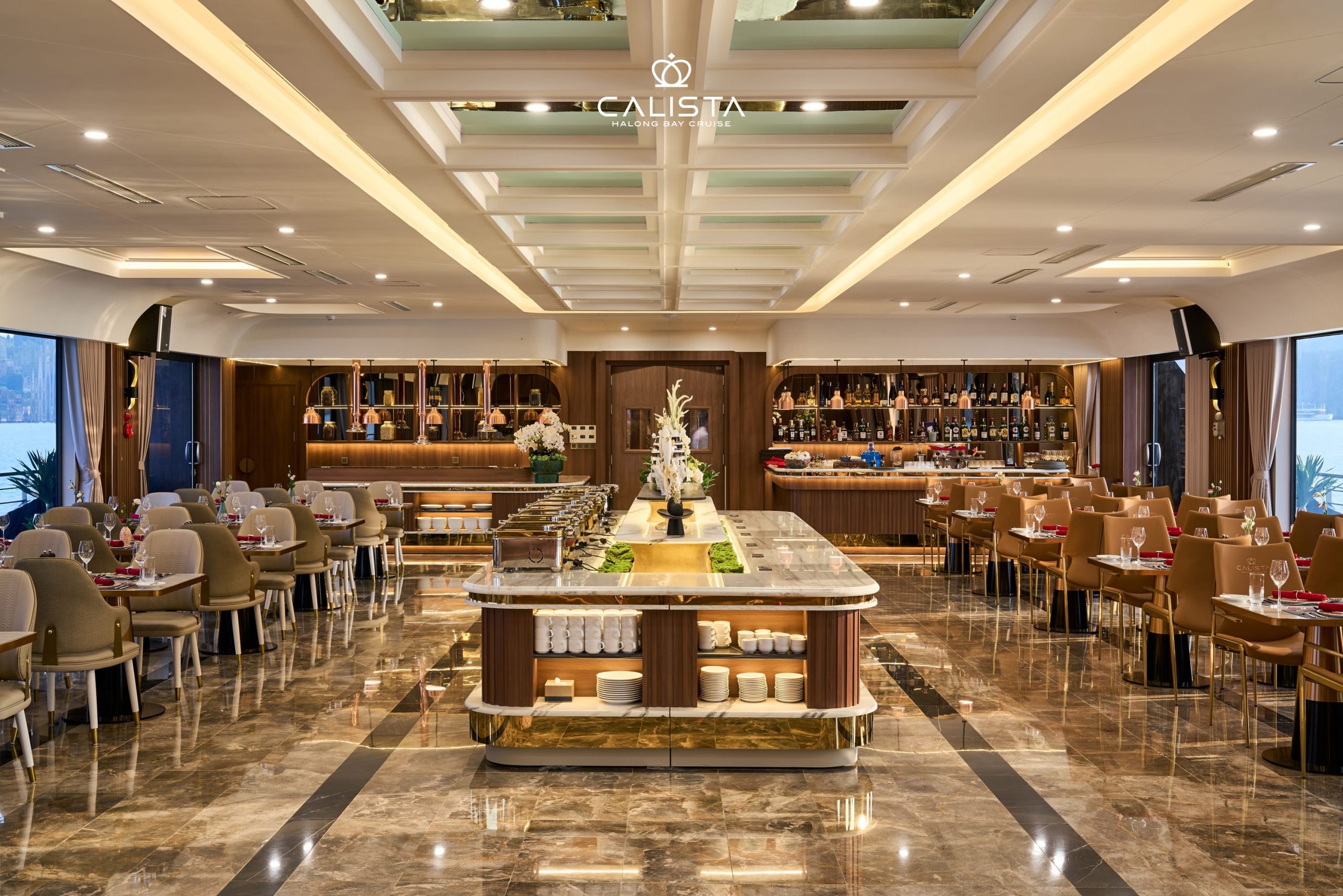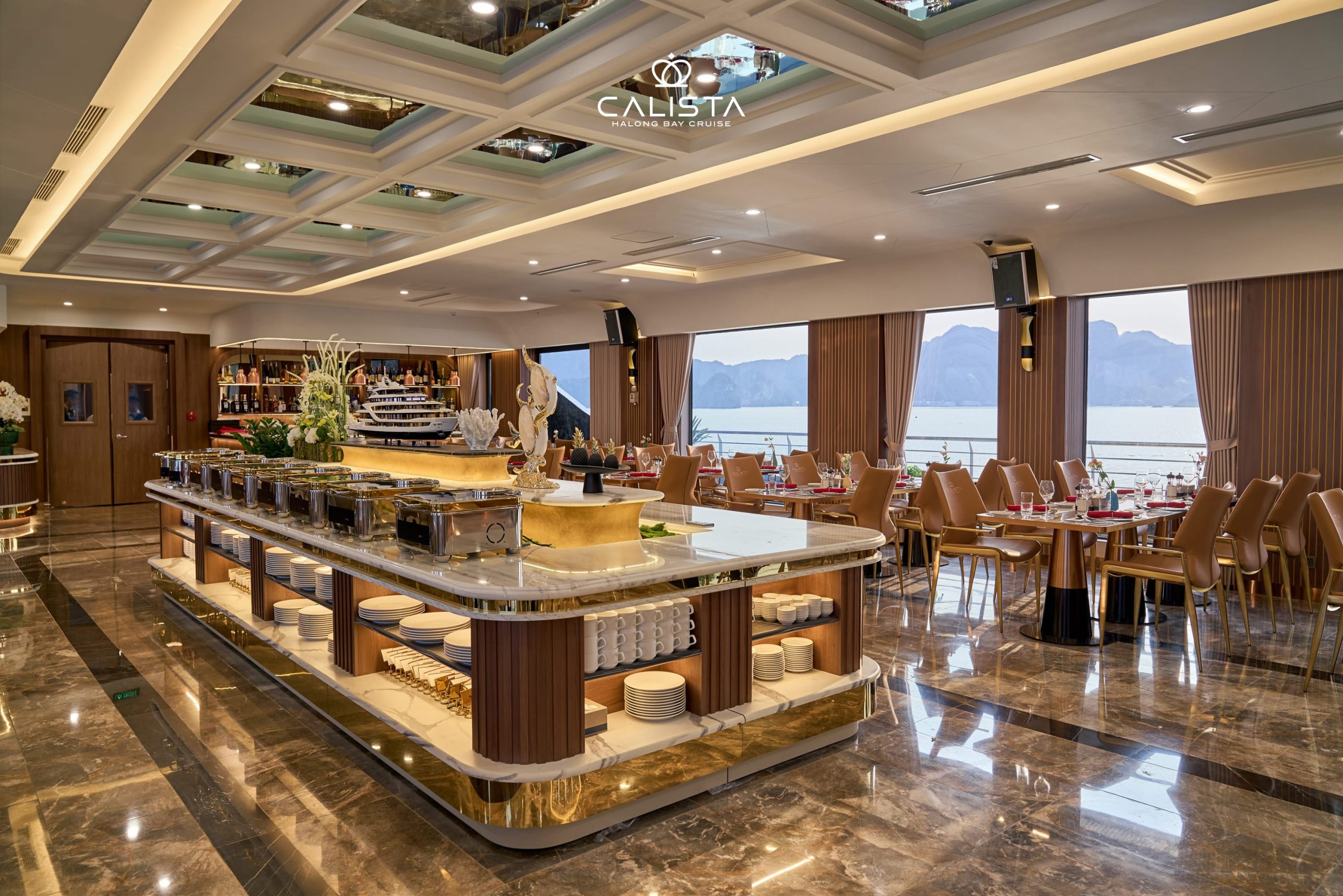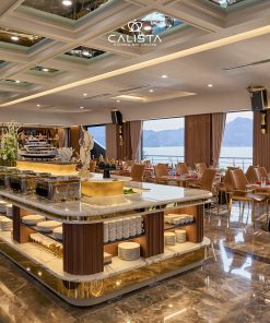 Thưởng thức một thực đơn đặc biệt tinh tế được thiết kế cẩn thận bởi các chuyên gia ẩm thực Việt Nam tài năng tại nhà hàng Bayview Dining sang trọng. Du khách có thể tận hưởng các món ăn ngon trong không gian thoáng đãng và ngắm nhìn các danh lam thắng cảnh như Làng chài Hoa Cương, Hòn Ngón Tay,… khi du thuyền lướt qua Vịnh Hạ Long.