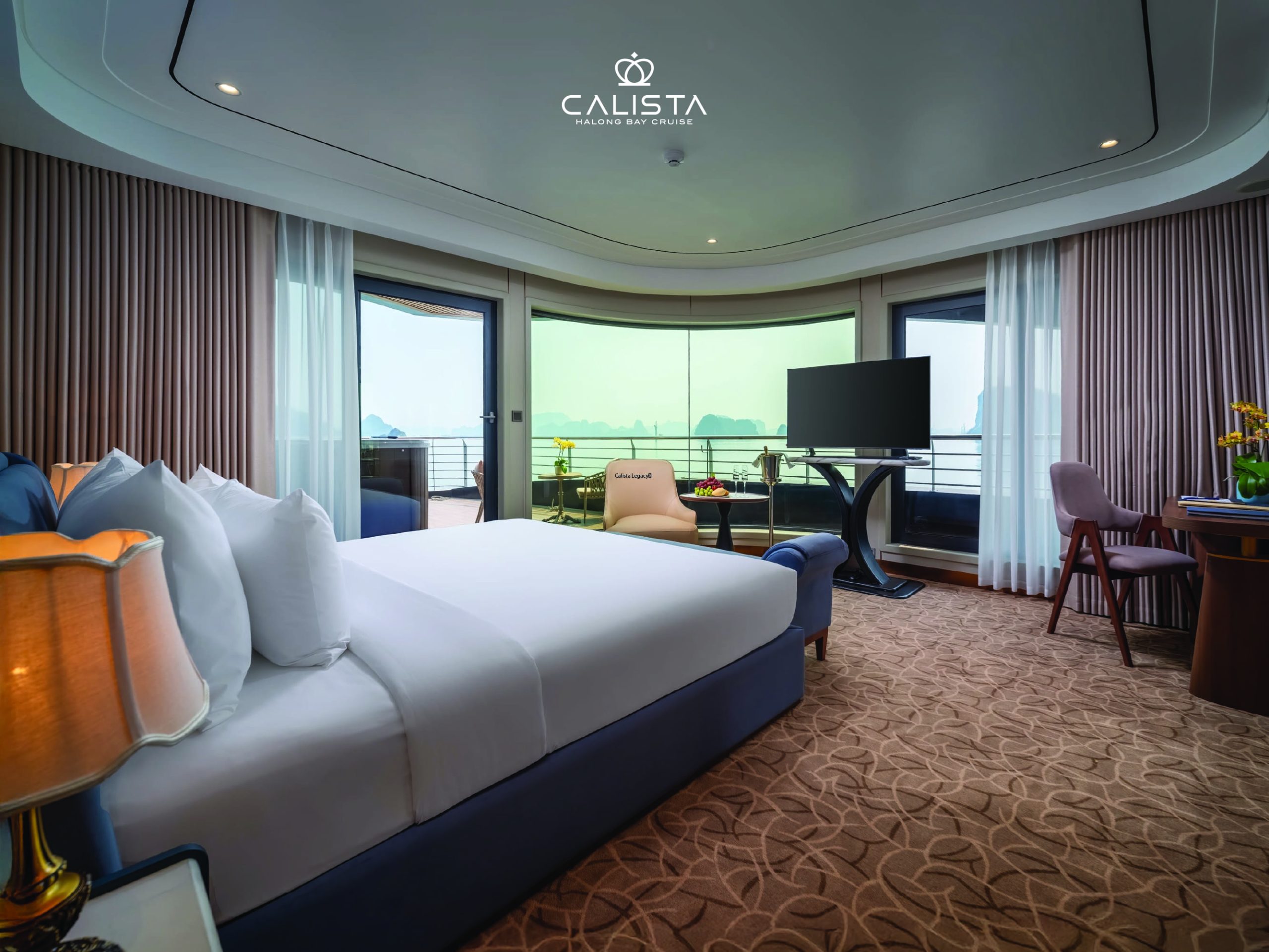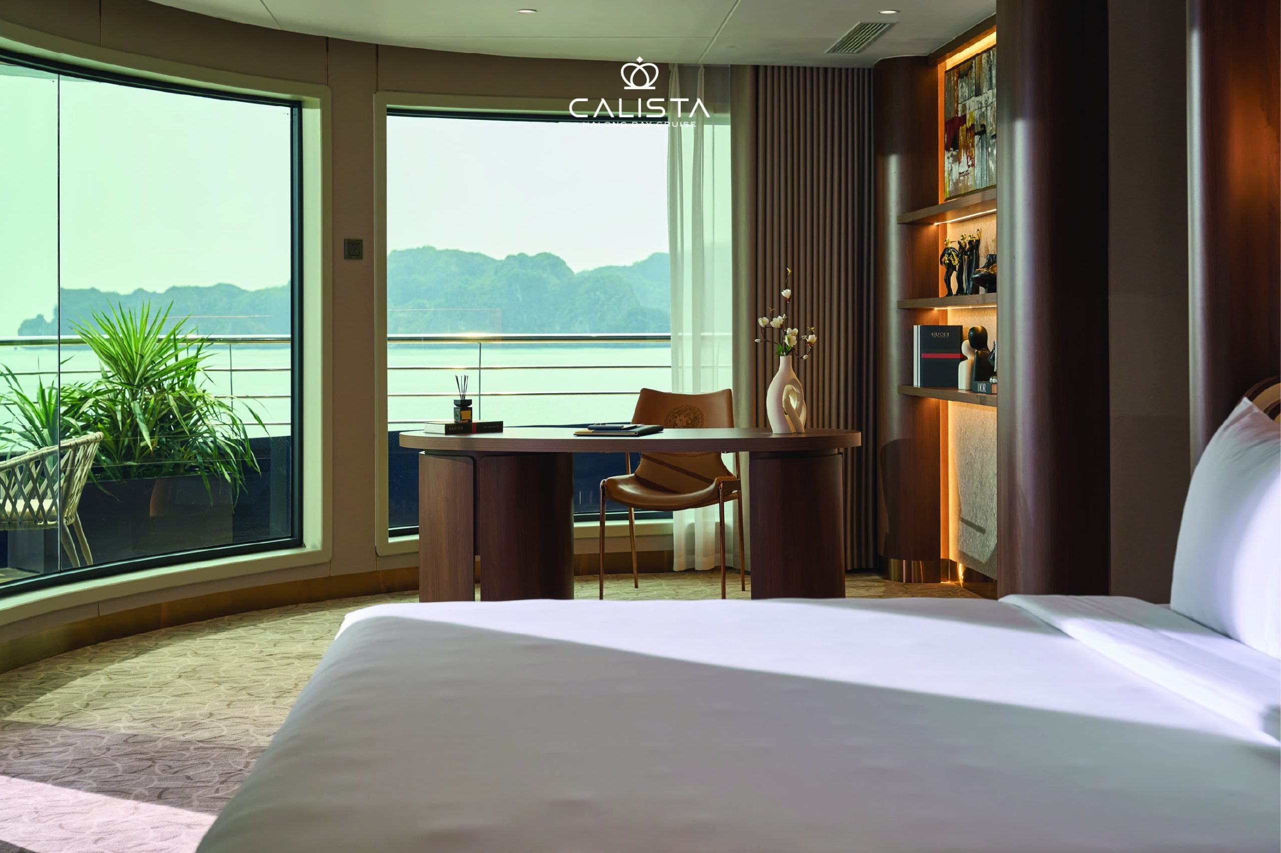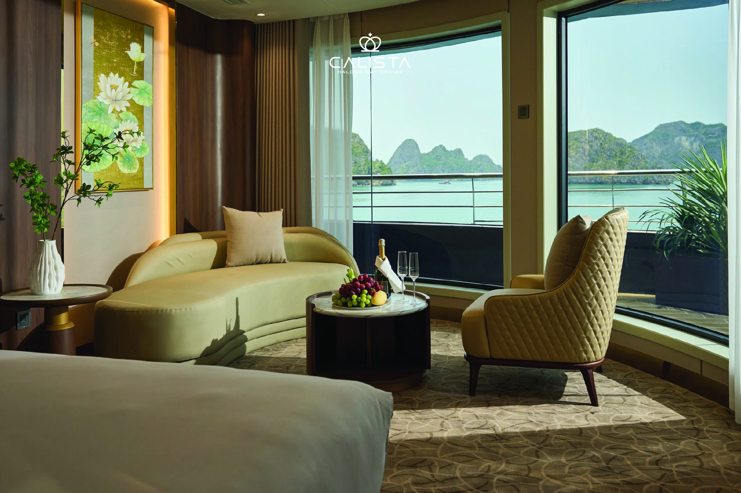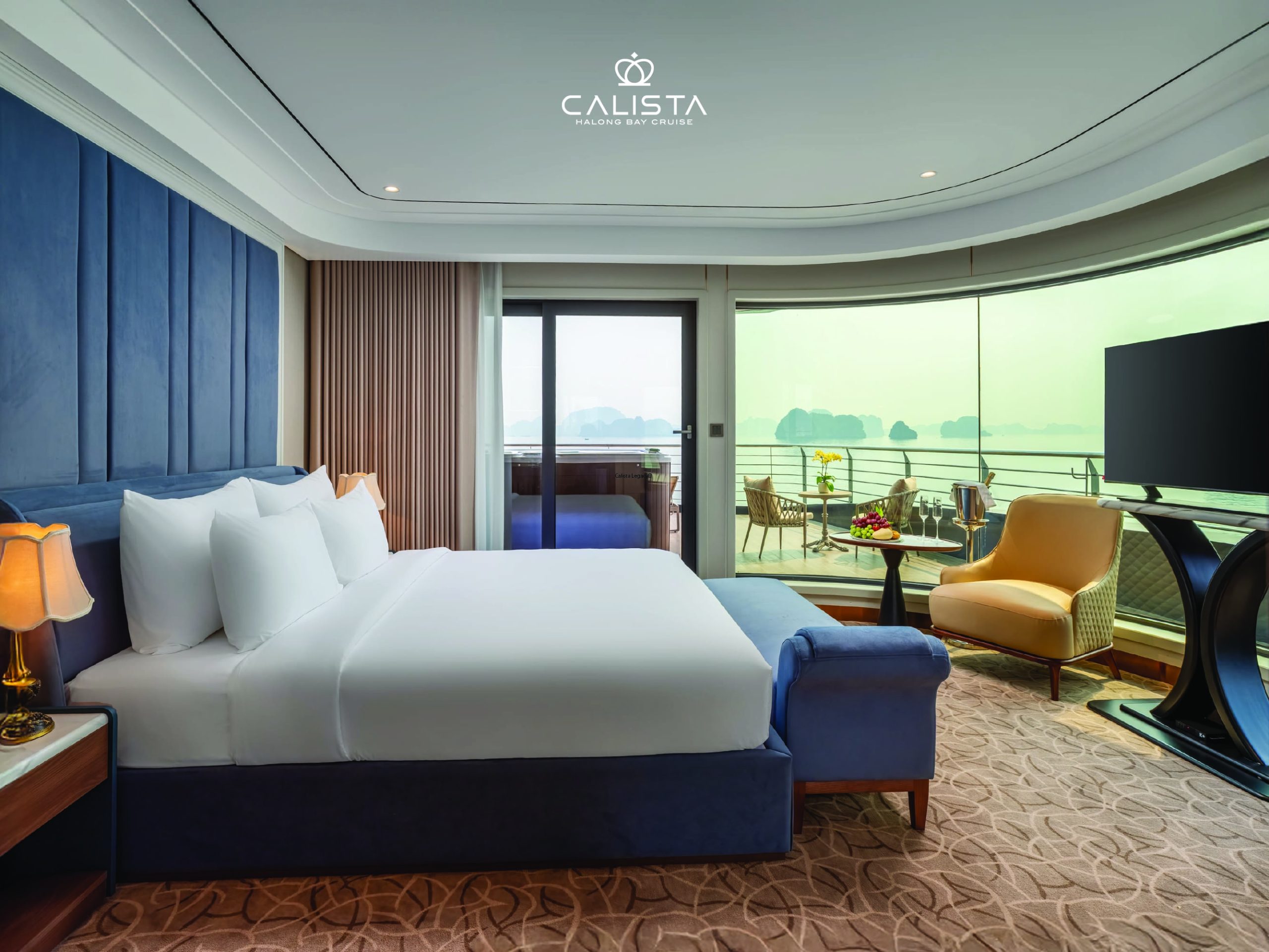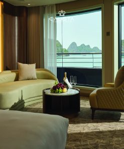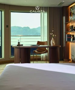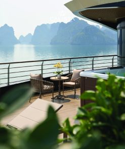 - Phòng nghỉ sang trọng trên du thuyền có ban công riêng và tầm nhìn toàn cảnh
