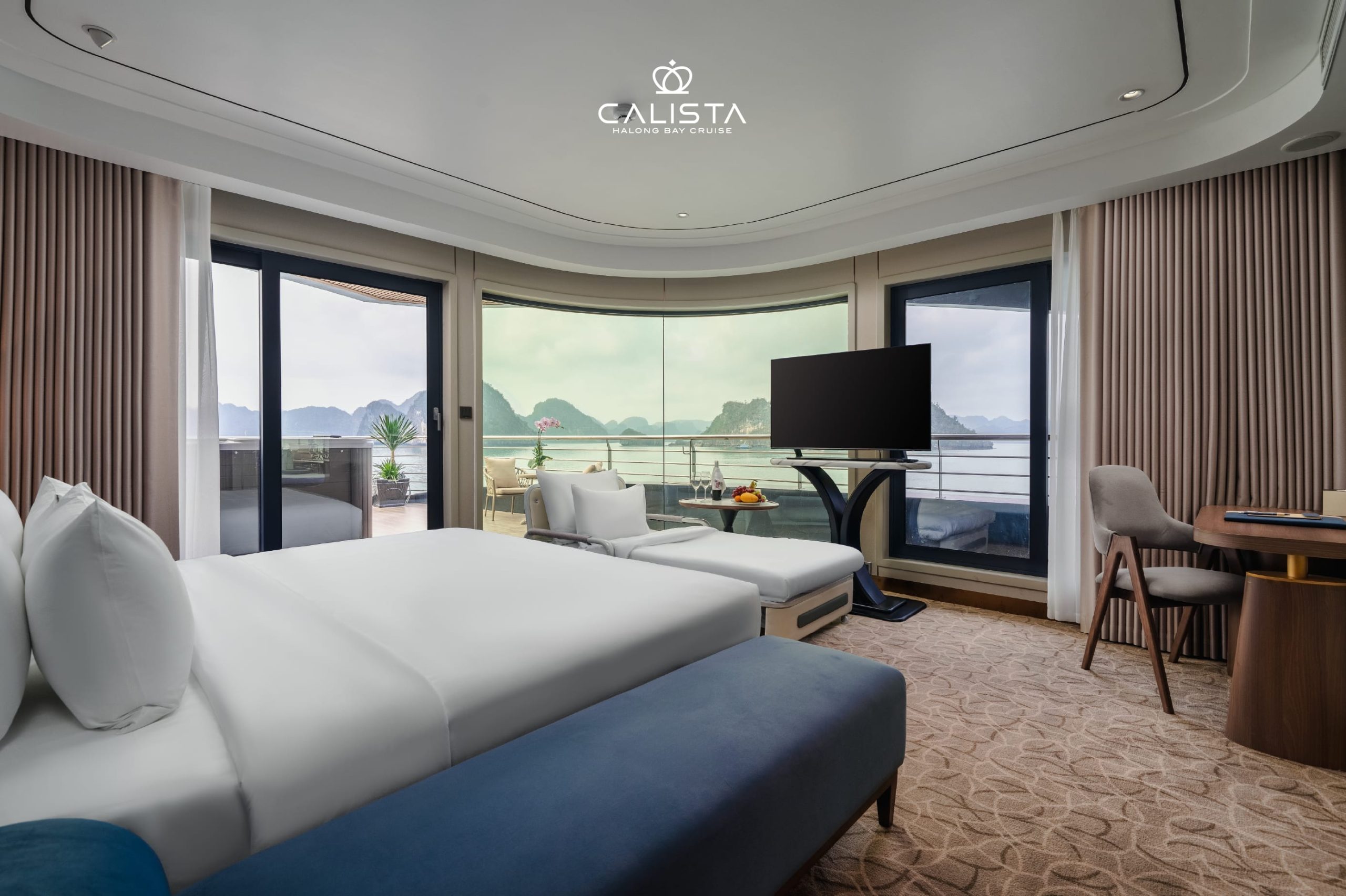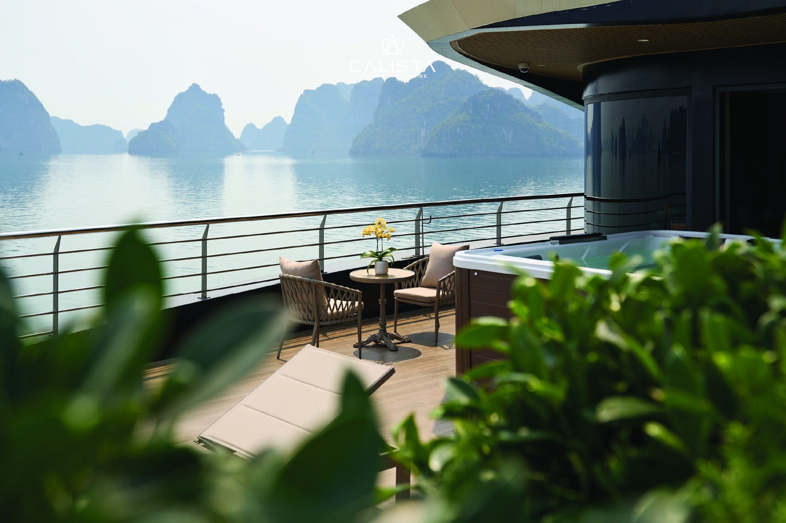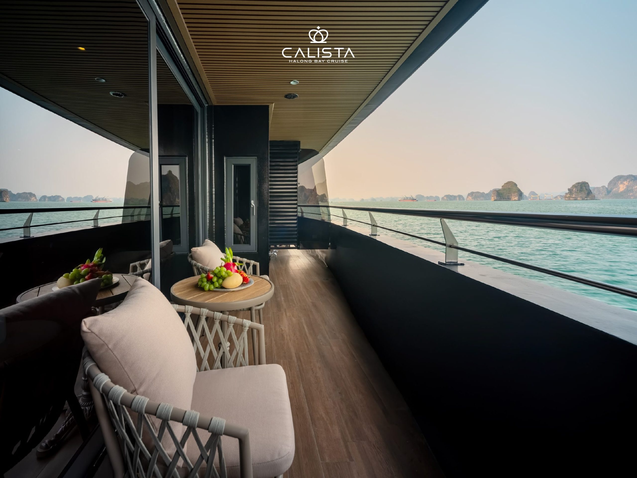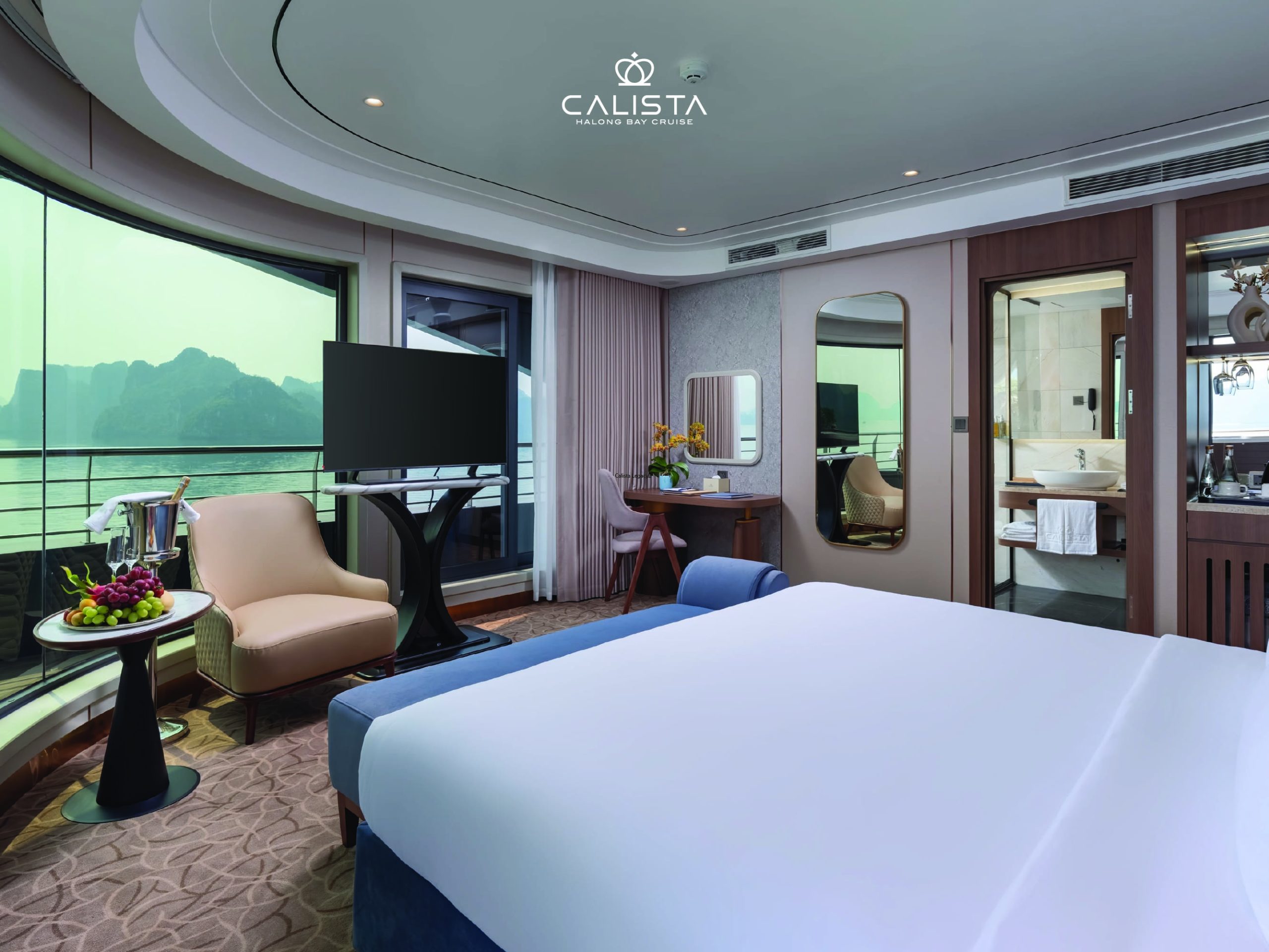 - Phòng nghỉ sang trọng trên du thuyền có ban công riêng và tầm nhìn toàn cảnh