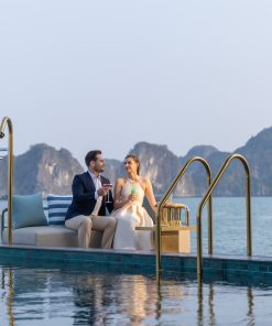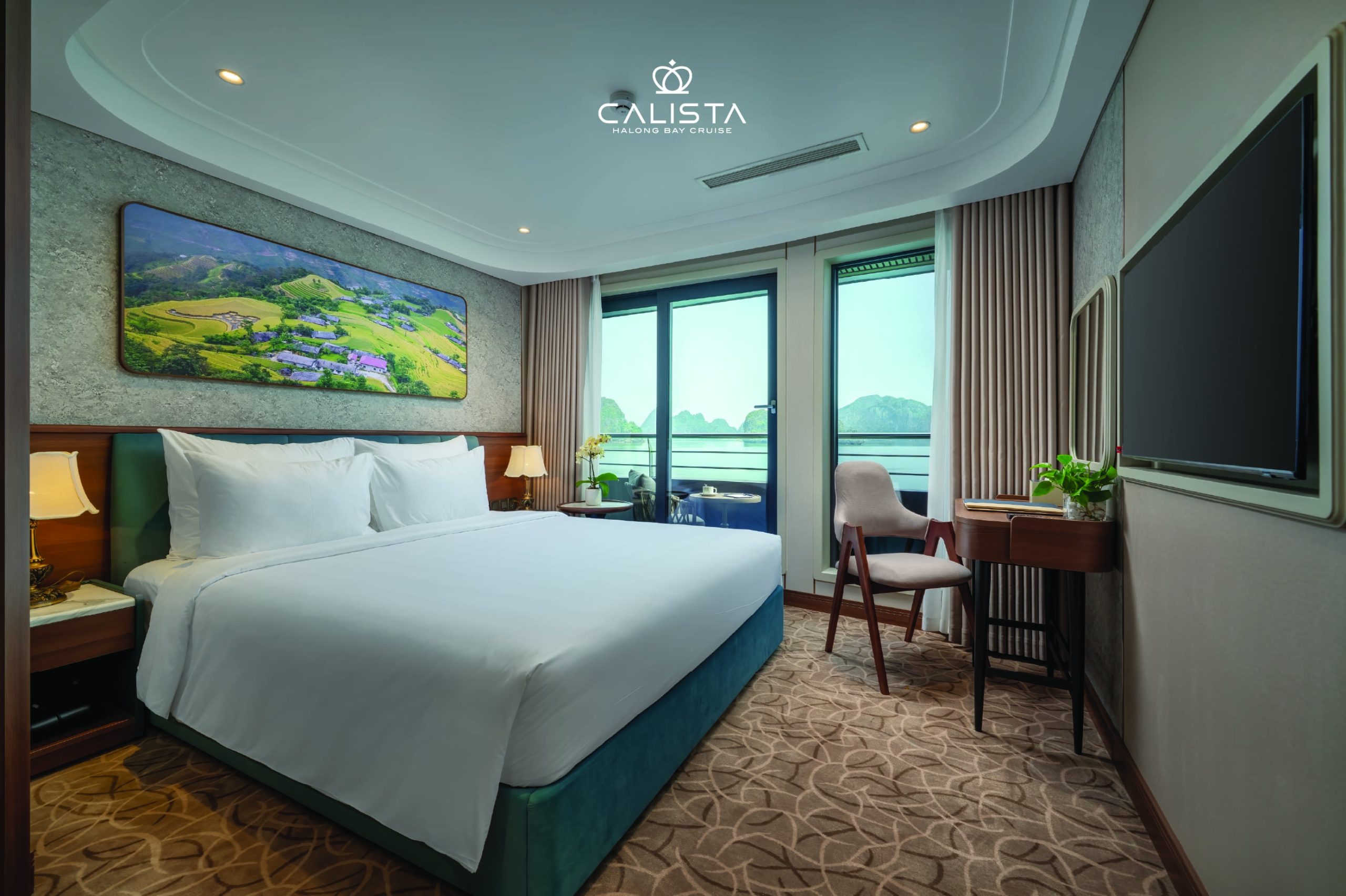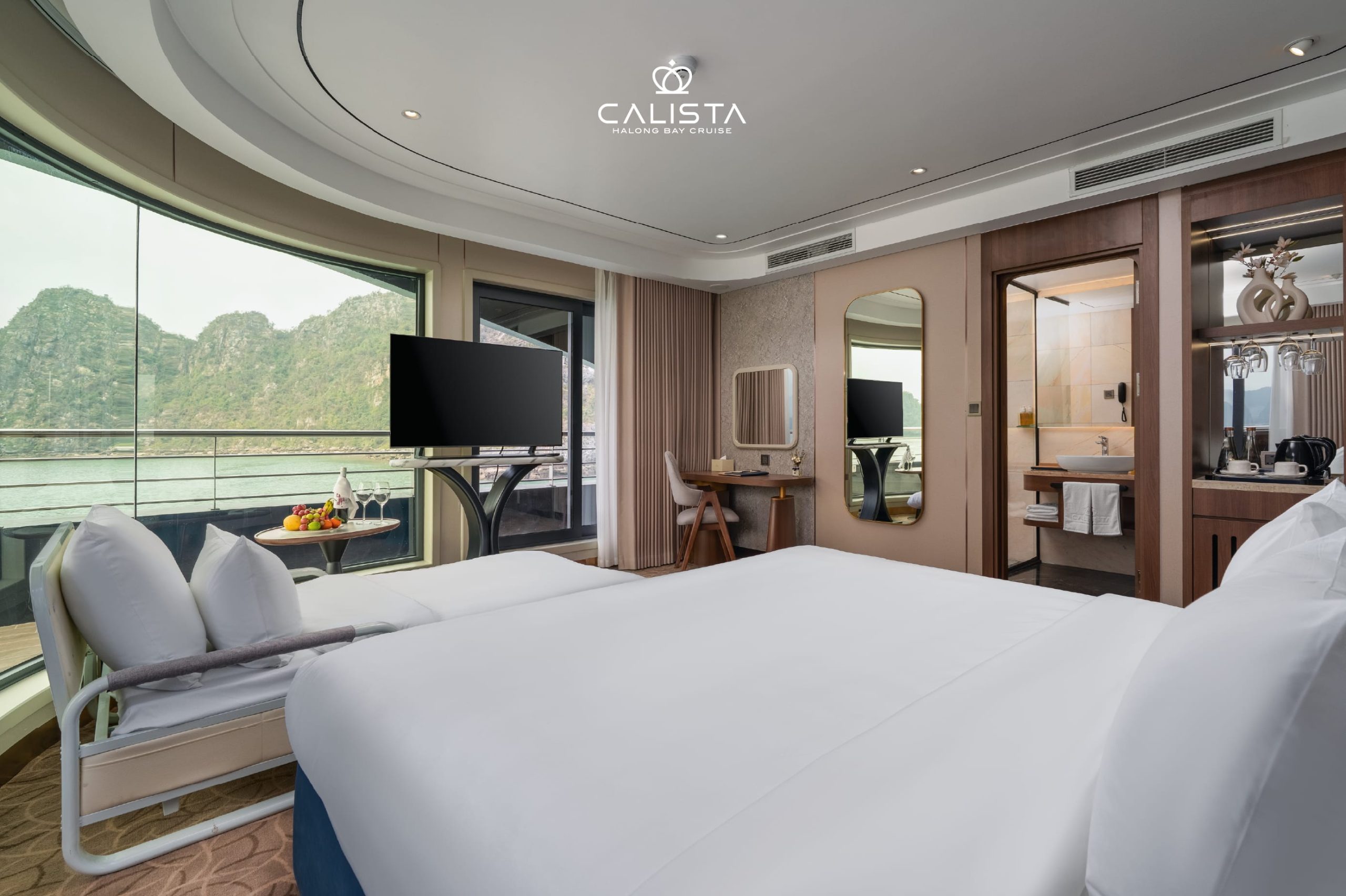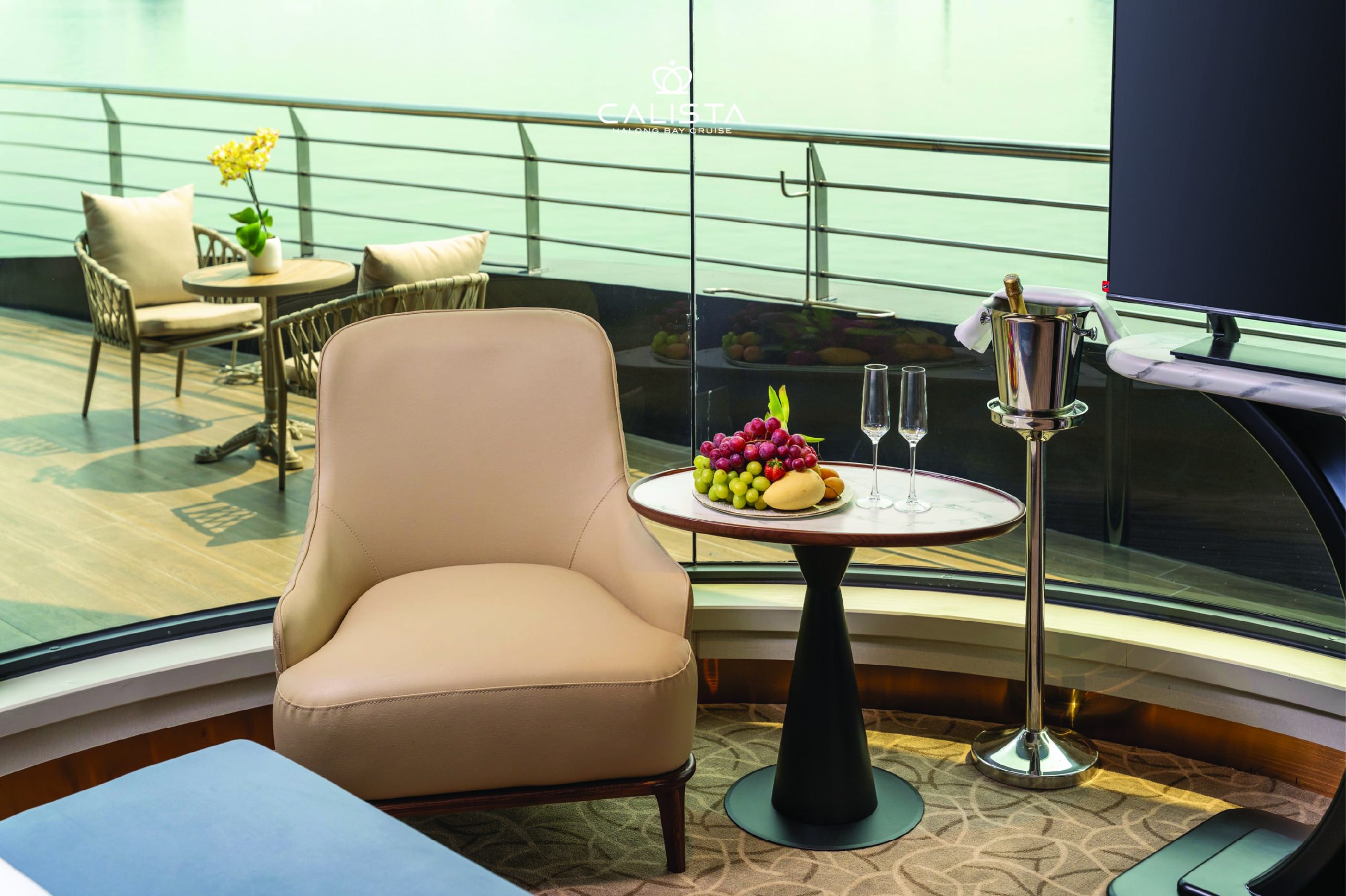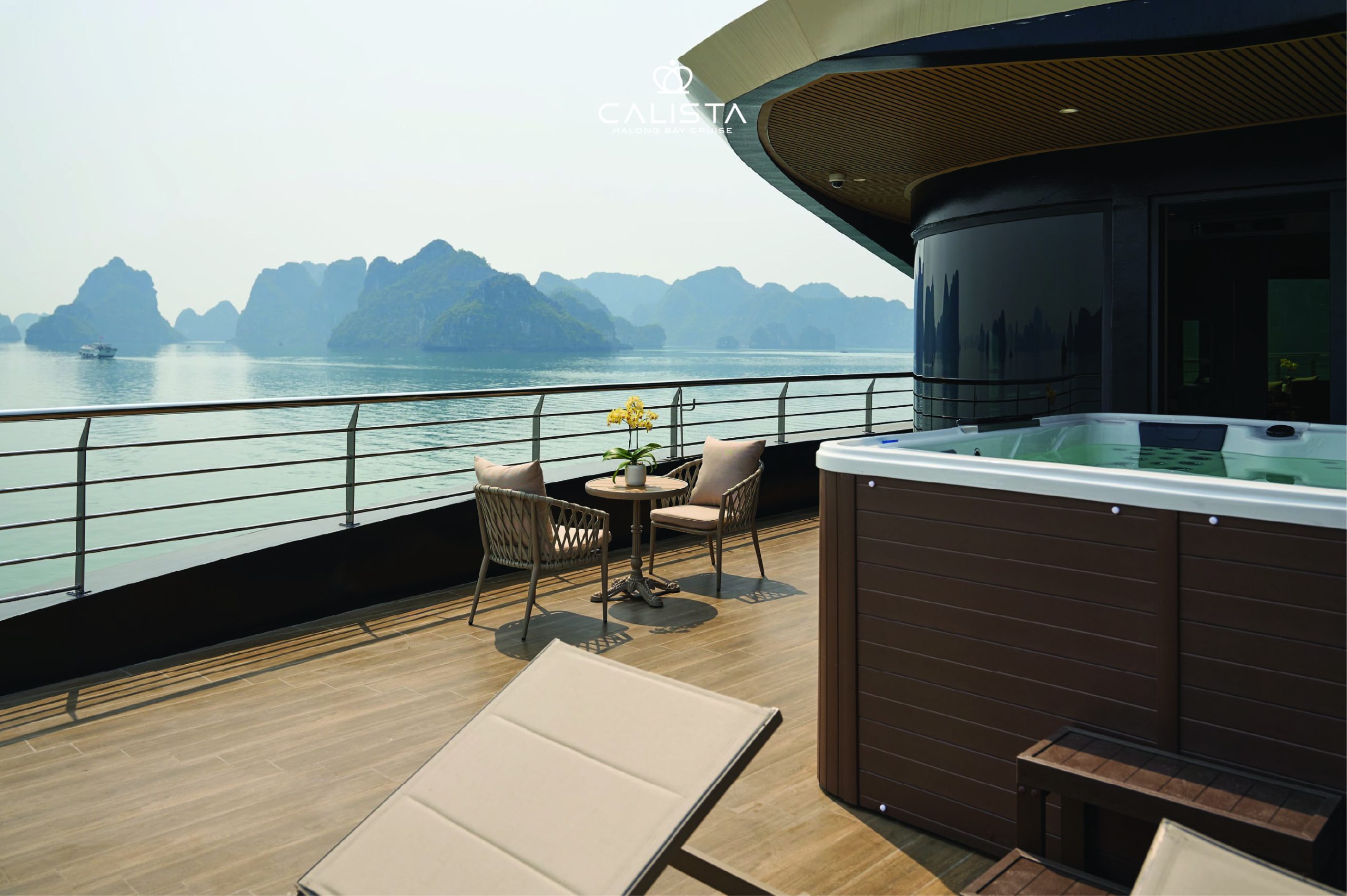 - Phòng nghỉ sang trọng trên du thuyền có ban công riêng và tầm nhìn toàn cảnh