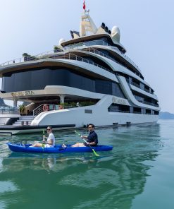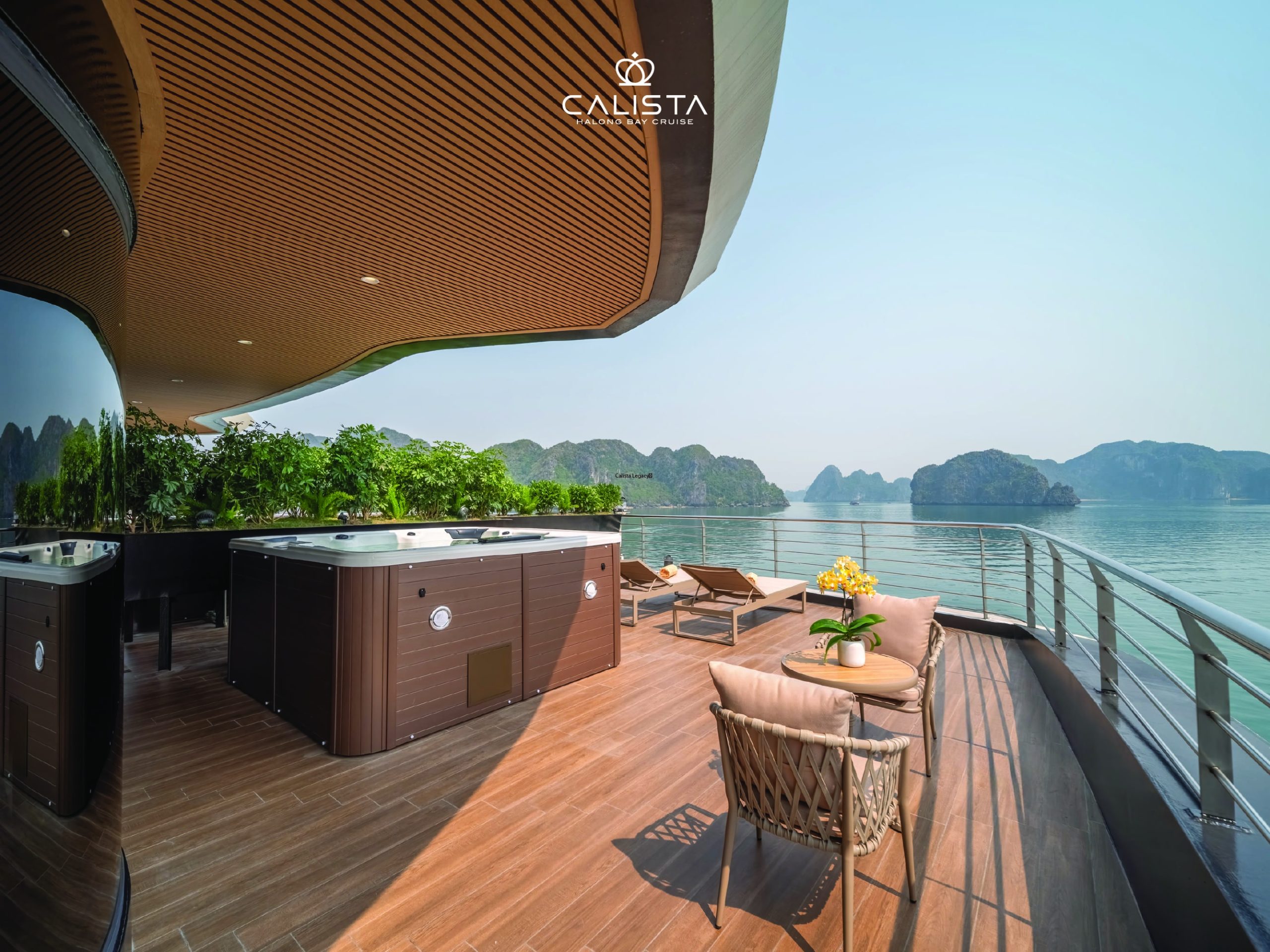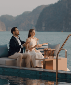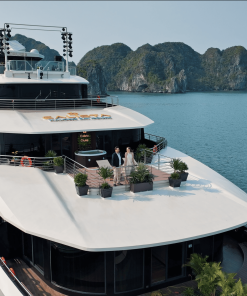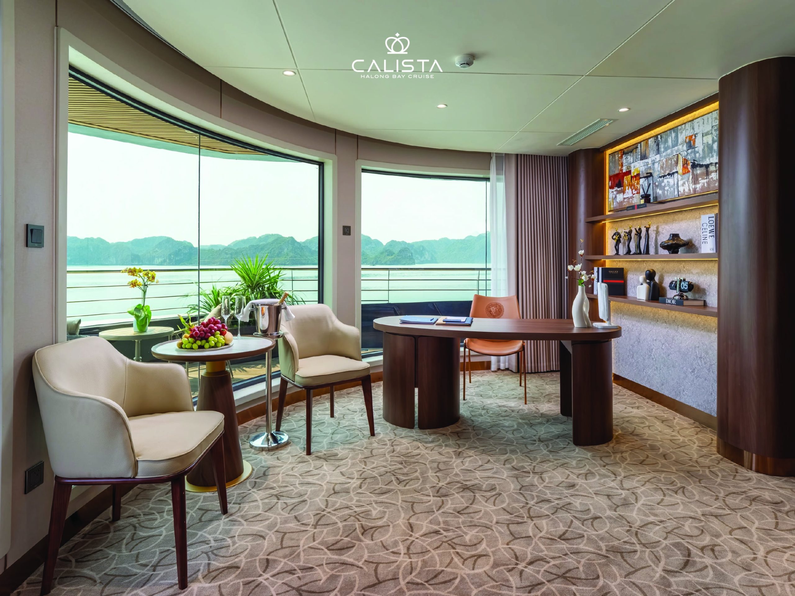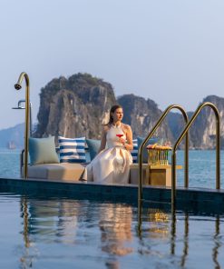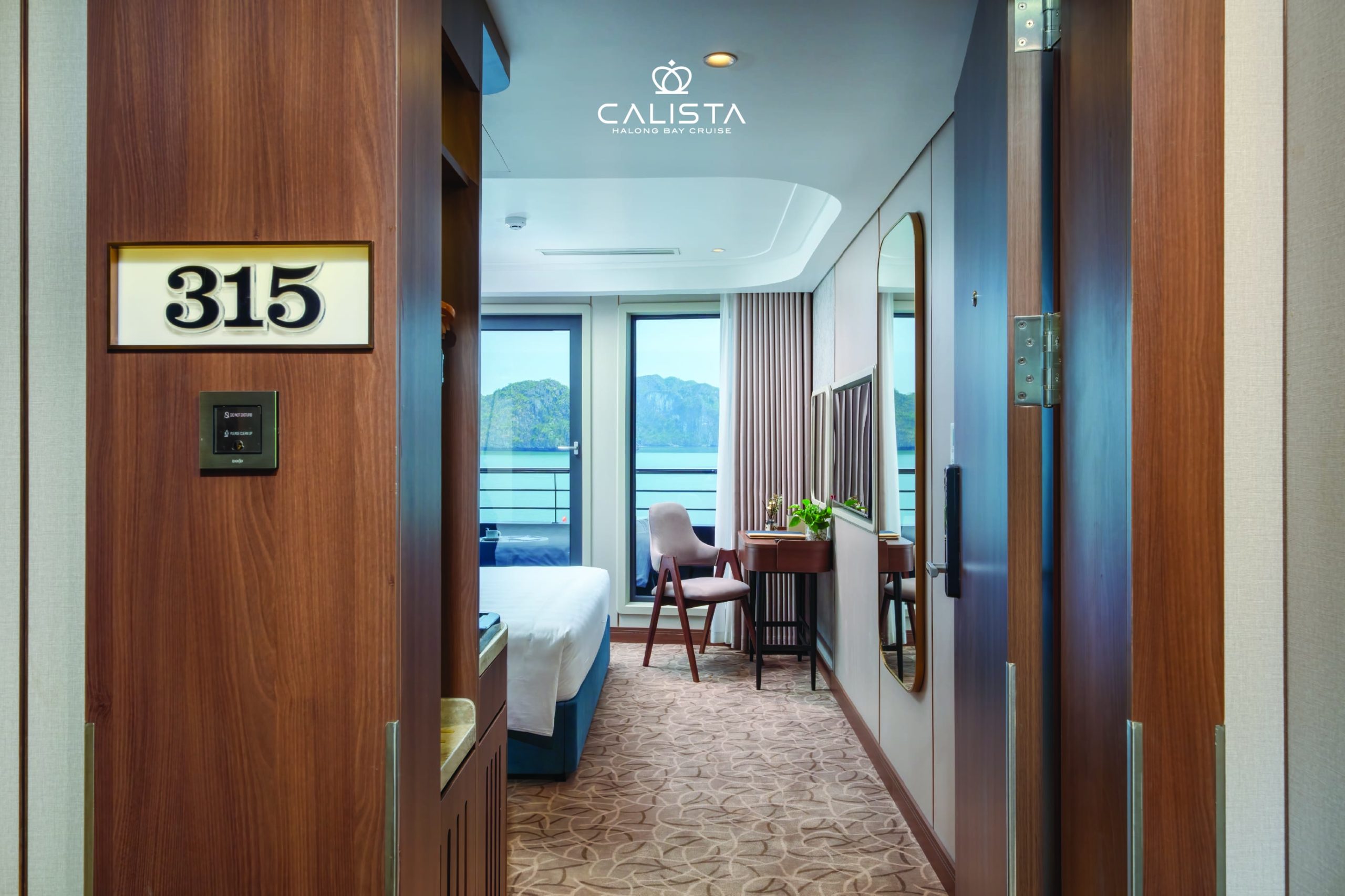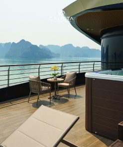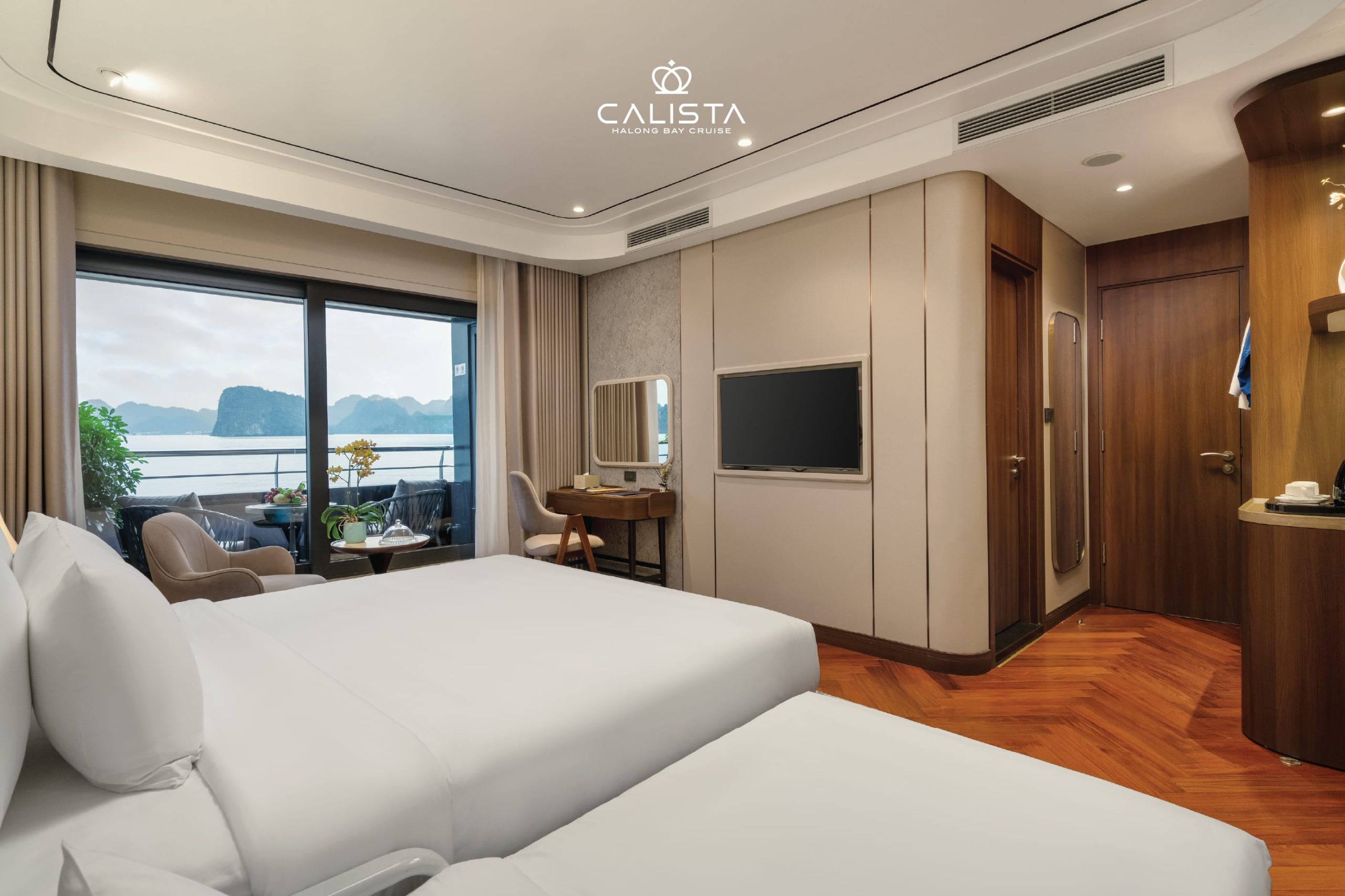 - Phòng nghỉ sang trọng trên du thuyền có ban công riêng và tầm nhìn toàn cảnh