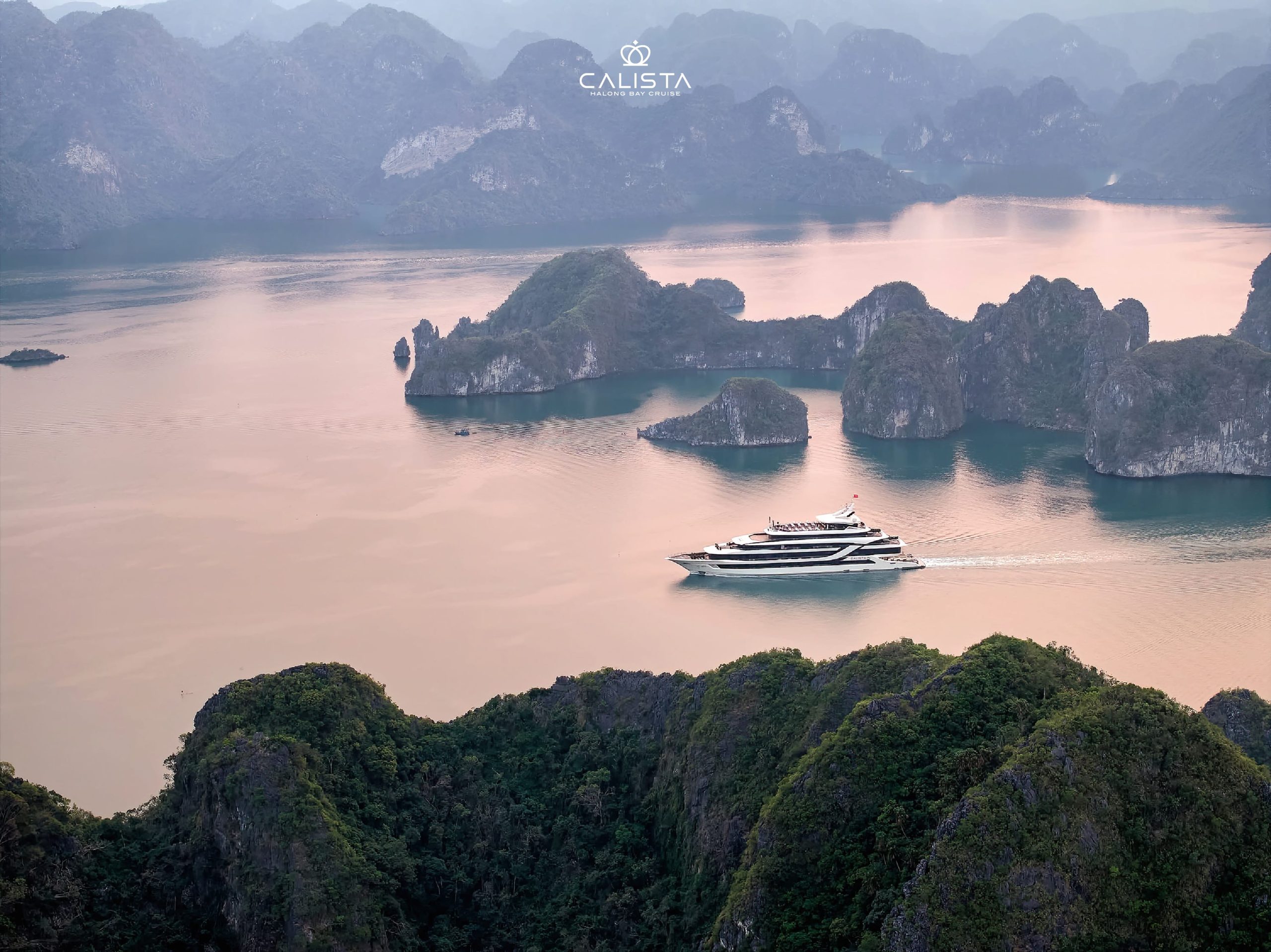Du khách di chuyển bằng xuồng ra Du thuyền Calista Cruise và sẽ được hướng dẫn lên nhà hàng Bayview trên tầng 02 thưởng thức Welcome drink. Quản lý du thuyền sẽ cung cấp thông tin lịch trình và các quy tắc an toàn. Du khách làm thủ tục, nhận chìa khóa, và về phòng nghỉ ngơi.
