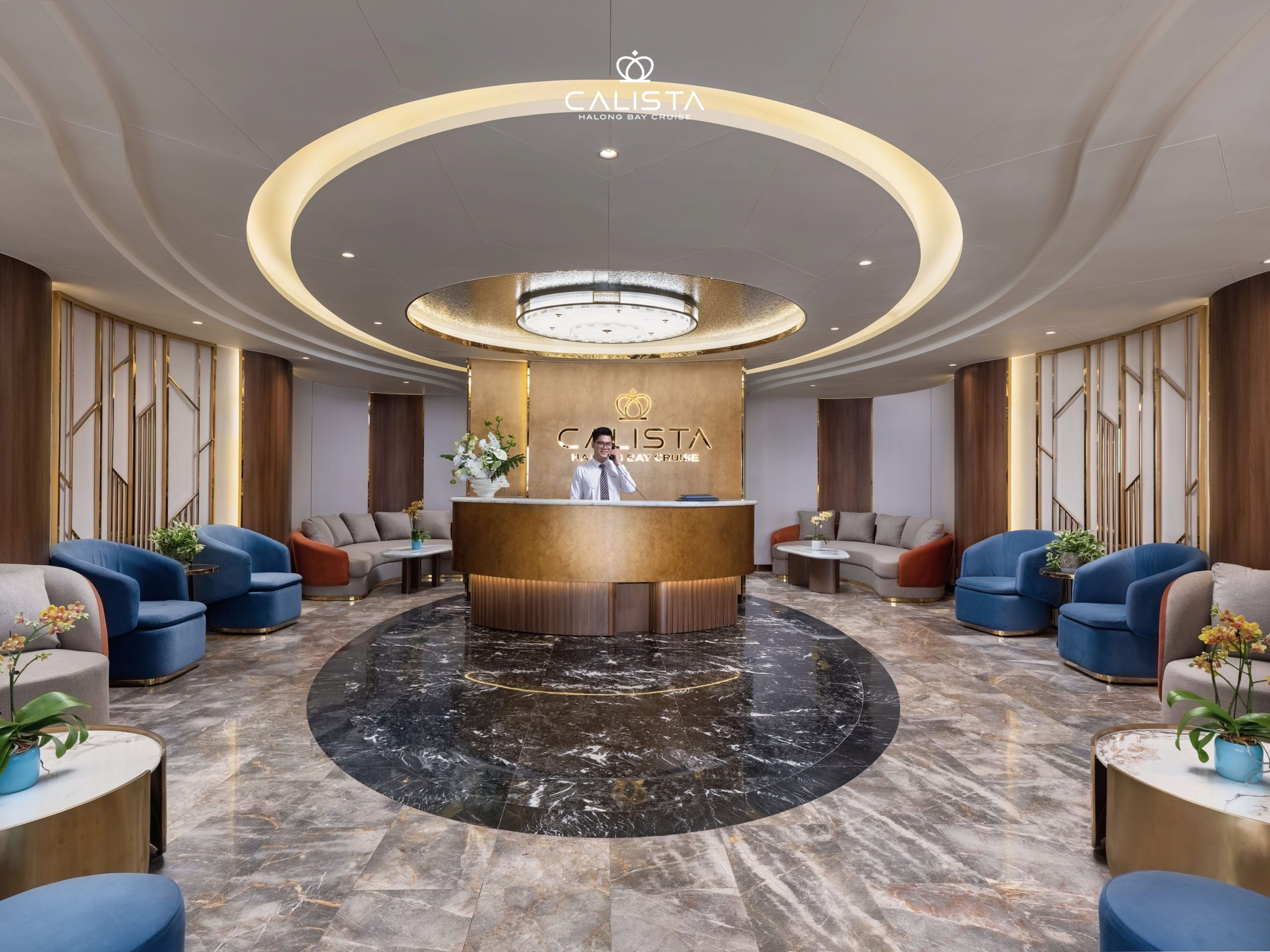 Chào mừng quý khách lên du thuyền Calista Cruise: tại nhà chờ riêng biệt của Du thuyền nằm trong cảng Tuần Châu, quý khách thưởng thức Welcome drink và Canapé trước khi bắt đầu hành trình