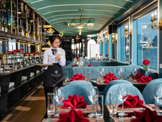 Du thuyền nhà hàng Amethyst Day Cruise đạt chuẩn 5 sao cung cấp dịch vụ du lịch nghỉ dưỡng trên Vịnh Hạ Long. Với lịch trình tham quan 8 tiếng, quý khách sẽ được khám phá hải trình độc đáo như hòn Móng Tay, hang Sửng Sốt, hang Luồn,… hay tham gia các hoạt động thú vị như bơi lội, chèo kayak, thưởng thức những món ăn ngon. Amethyst hứa hẹn sẽ mang lại cho quý khách những trải nghiệm tuyệt vời nhất trong chuyến đi này.