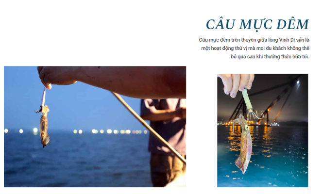 - Hoạt động: Vé tham quan, thắng cảnh, câu mực, chèo thuyền kayak