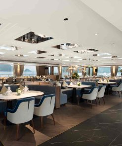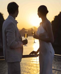 Thưởng thức bữa tối Trải nghiệm bữa tối sang trọng với thực đơn các món ăn đặc sắc phong vị Việt Nam do bếp trưởng soạn riêng tại nhà hàng trên Du thuyền.