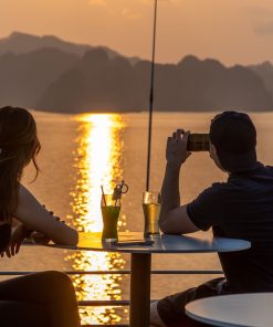 Đón hoàng hôn (Happy Hour) Đón hoàng hôn trên Vịnh Hạ Long, lựa chọn và tận hưởng tiệc Canapé và ưu đãi cho đồ uống ưa thích của bạn tại Sky bar.