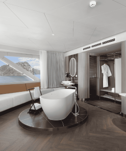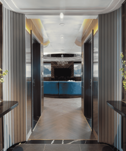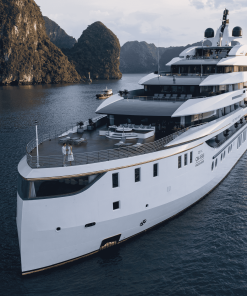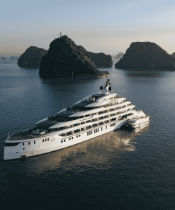 Tự hào là siêu du thuyền đẳng cấp nhất trên Vịnh Hạ Long, Grand Pioneers Halong Bay Cruise mang vẻ đẹp bề thế với chiều dài lên tới 110m, diện tích boong chính gần 2000m2. Sở hữu hữu 55 phòng nghỉ hướng vịnh, phòng Tổng thống Owner Suite với diện tích phòng lên tới 150m2, cùng không gian riêng 200m2 bên ngoài bao gồm bồn sục, ghế tắm nắng và sân đỗ trực thăng. Không chỉ là không gian nghỉ dưỡng, Grand Pioneers còn là siêu du thuyền tích hợp nhiều khu vực giải trí và phòng chức năng nhất: nhà hàng, bar & lounge, karaoke, spa, sân golf 3D, phòng rượu & cigar lounge, fitness,…