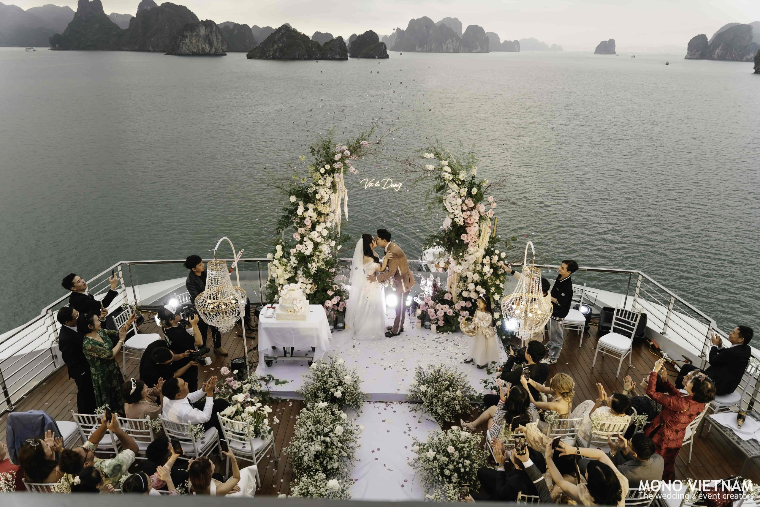 Làm thủ tục lên du thuyền Quý khách di chuyển tới du thuyền bằng tàu trung chuyển.