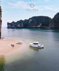 Di chuyển từ bến cảng Tuần Châu ra du thuyền bằng xuồng cao tốc